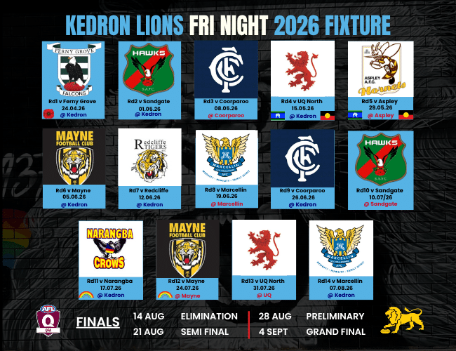 Founded in 1937, the Kedron Lions are focused on the playing and promotion of Australian Football. Boasting a proud and successful history as a family-friendly all-inclusive club, our constitution, in its objectives, states: