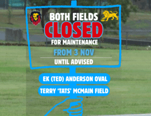 FIELDS CLOSED Both our fields will be closed from 3 November for maintenance.